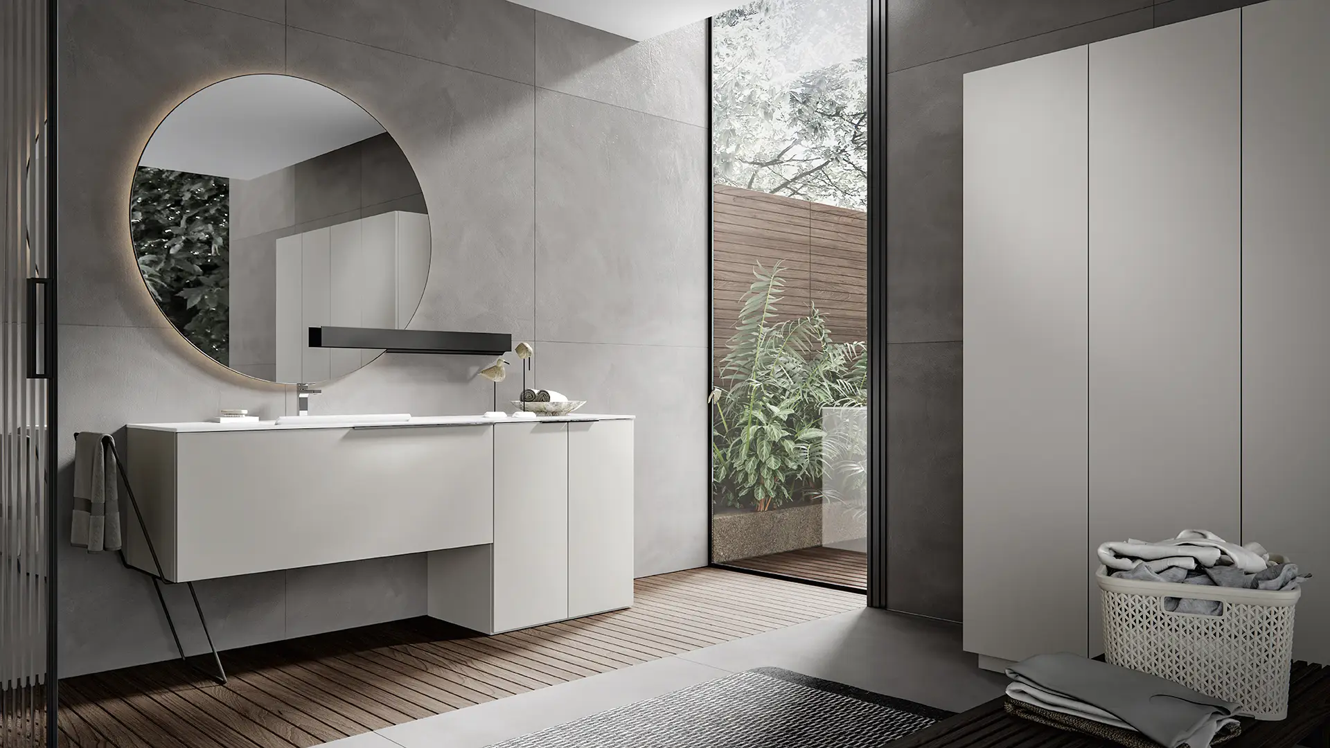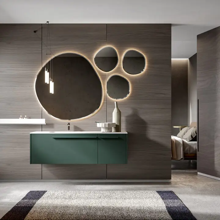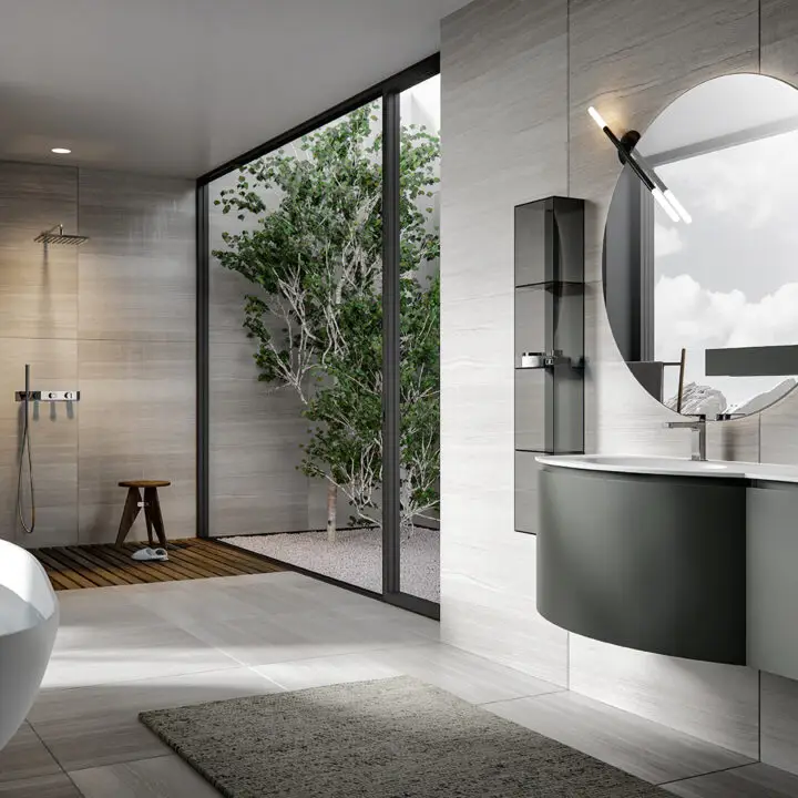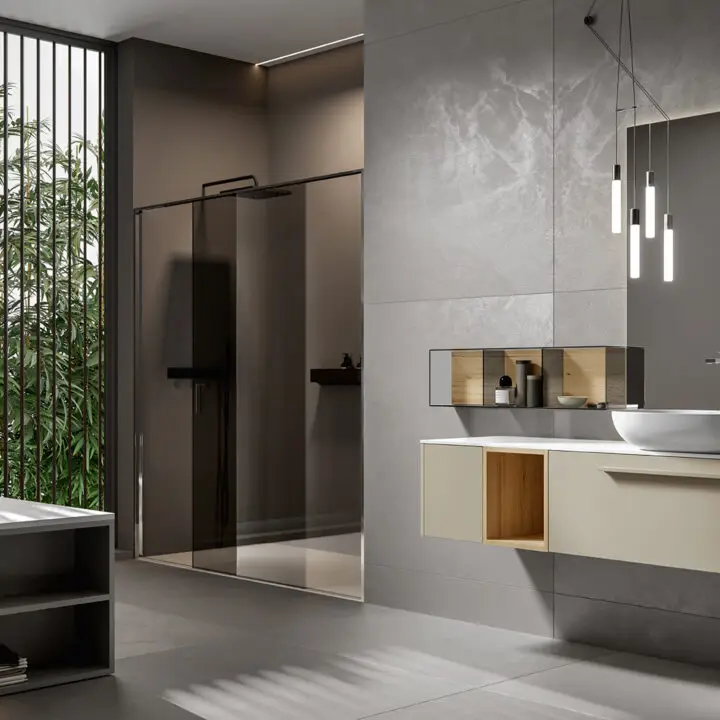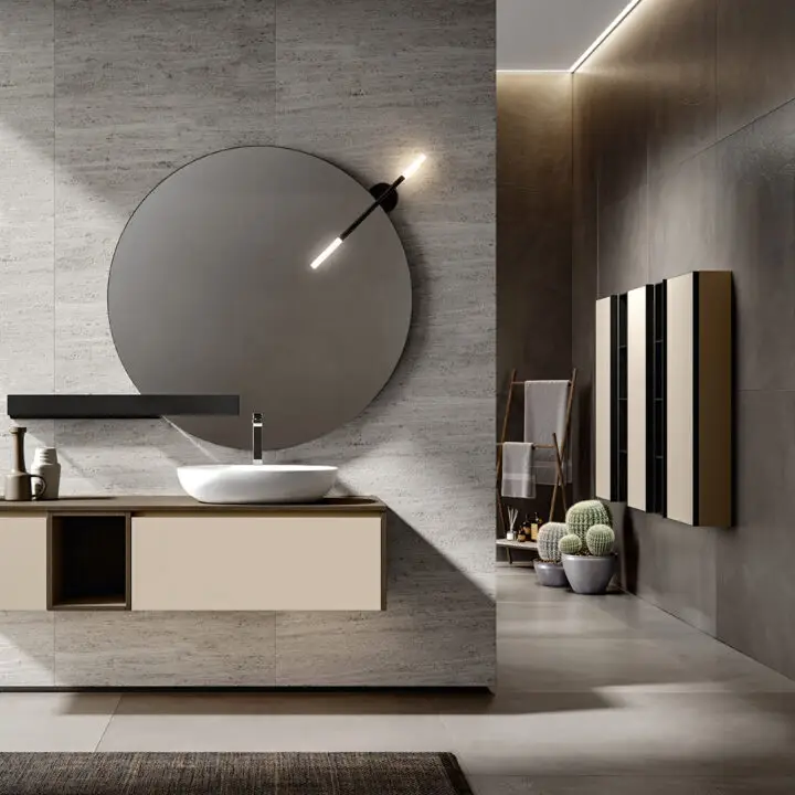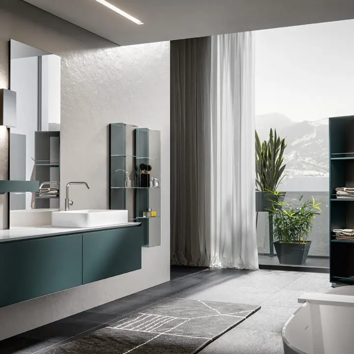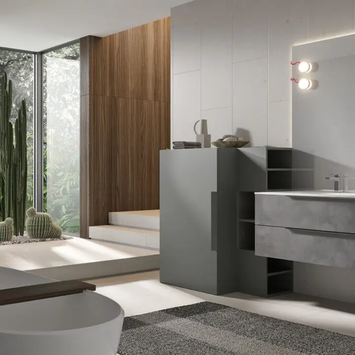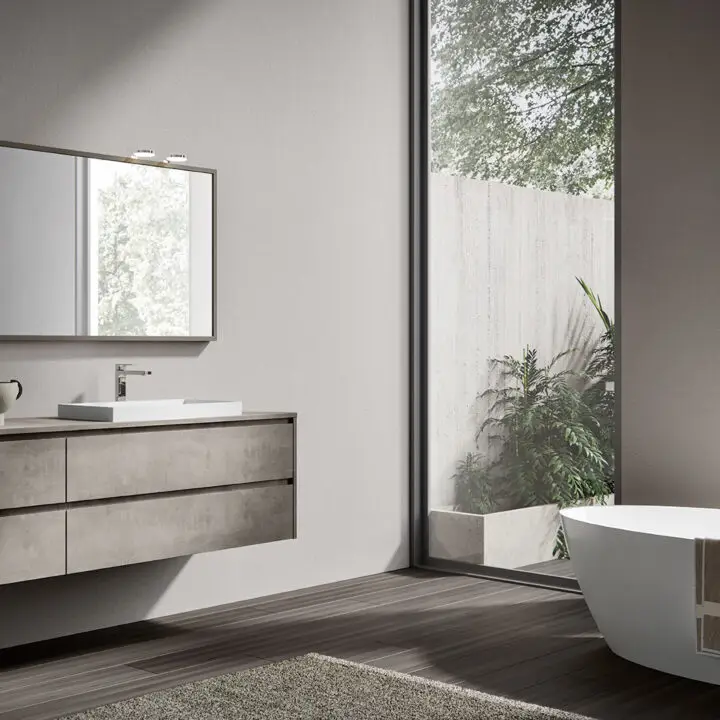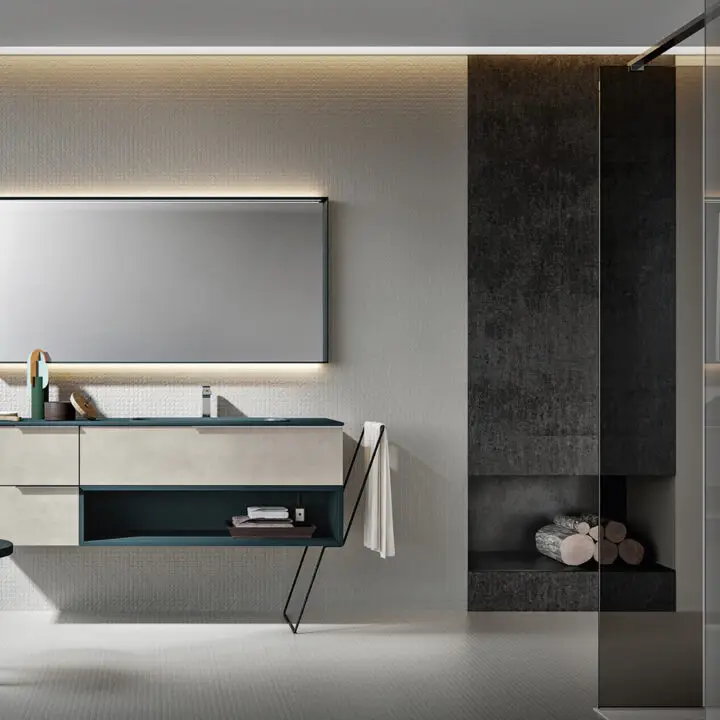 PLINTH: in the same finish of the vanities if Lacquered, or Asfalto for the finishes Melamine, HPL and Castagno.