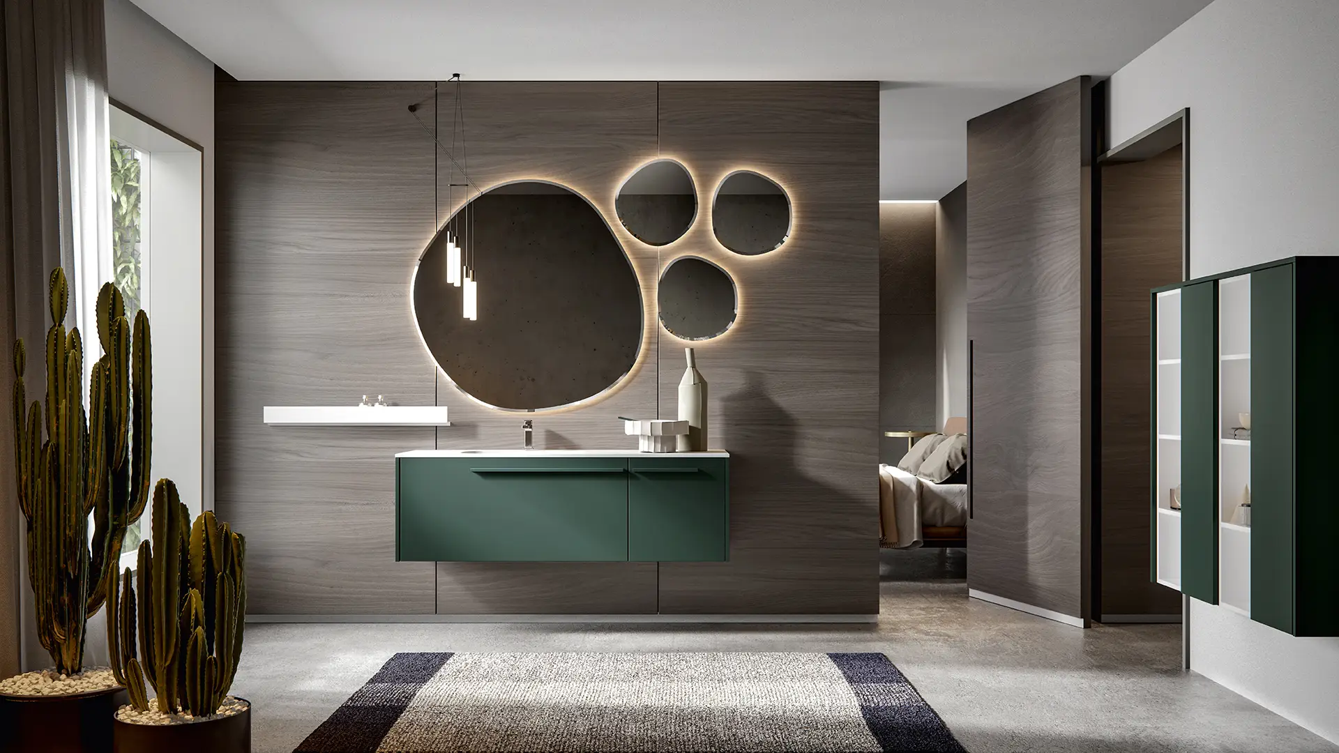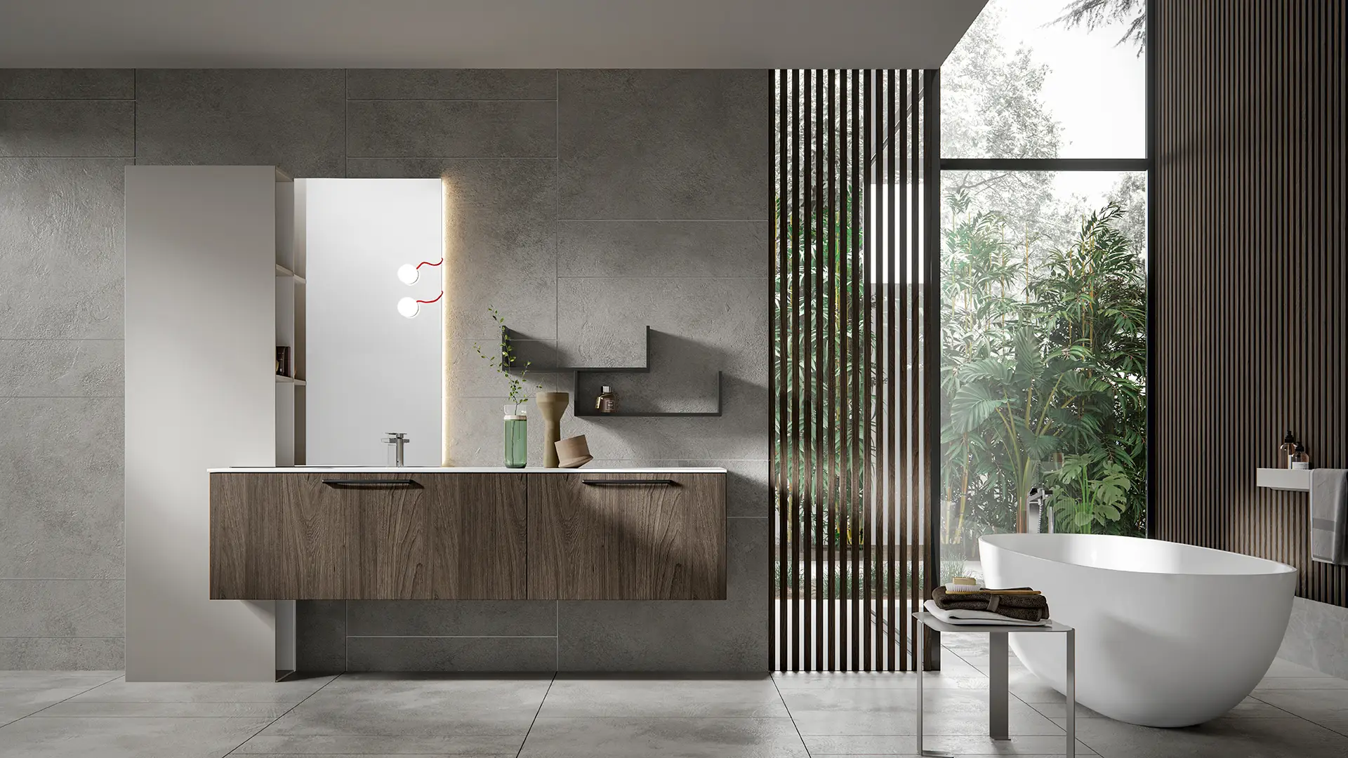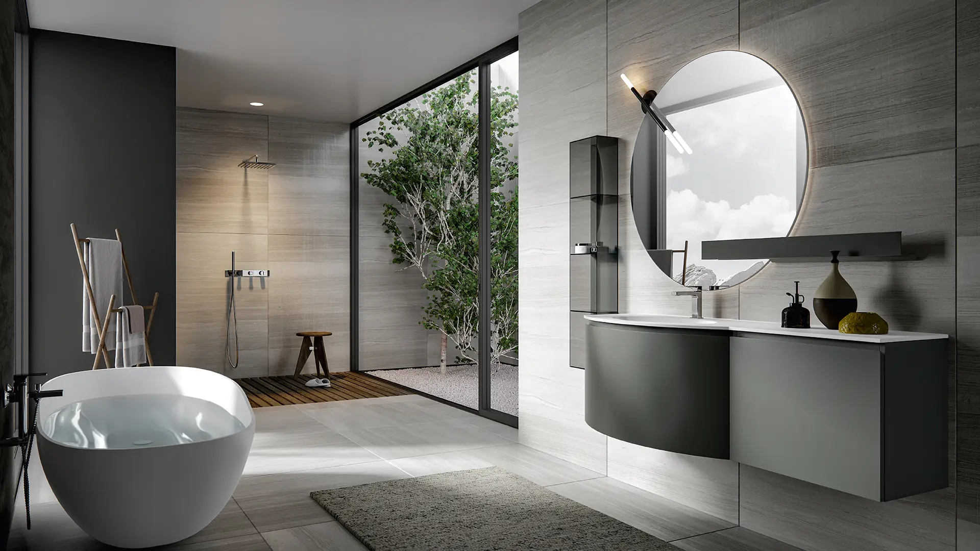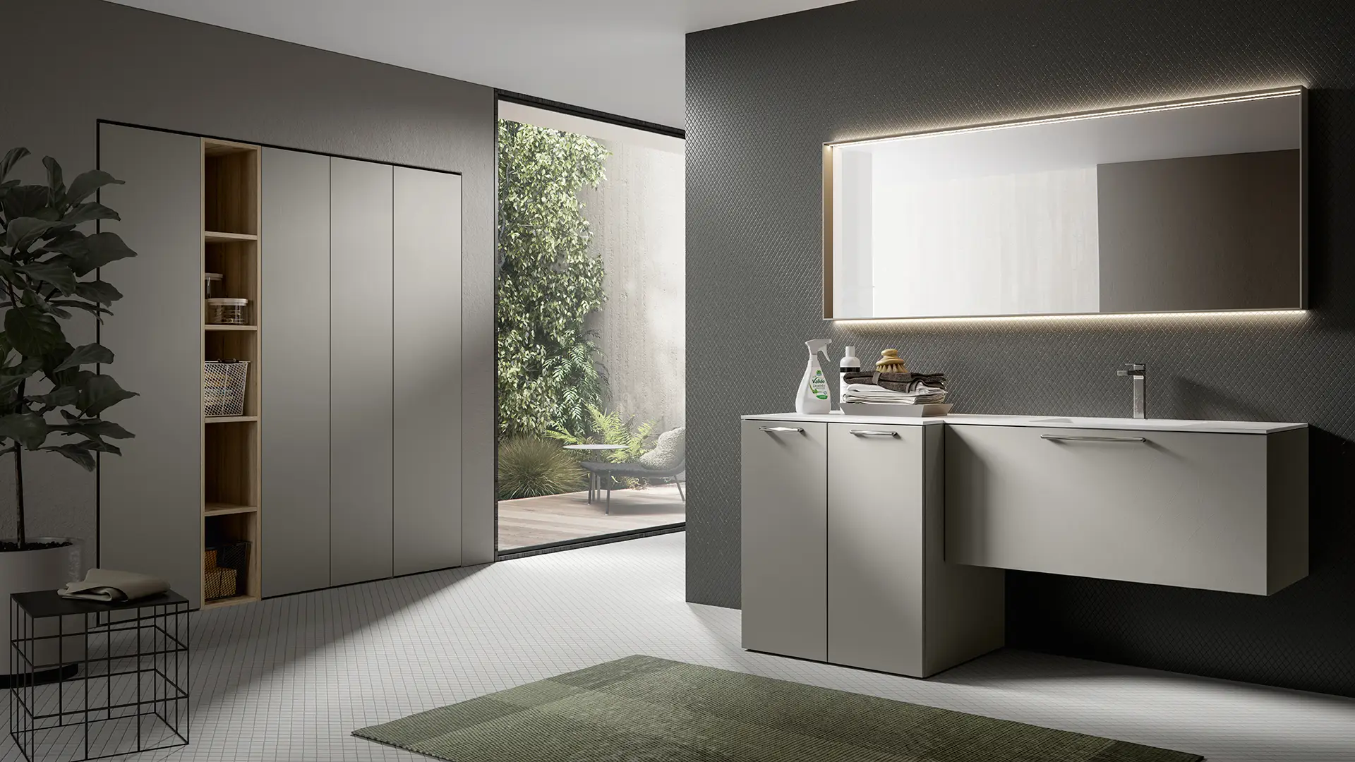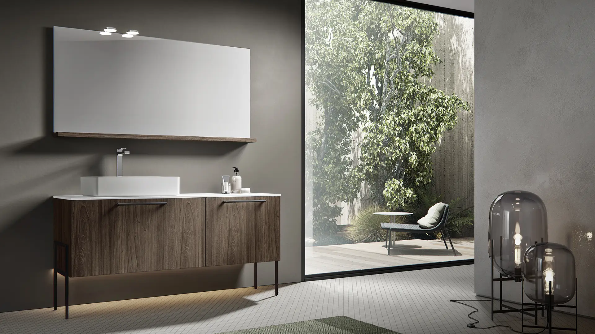 PLINTH: in the same finish of the vanities if Lacquered, or Asfalto for the finishes Melamine, HPL and Castagno.