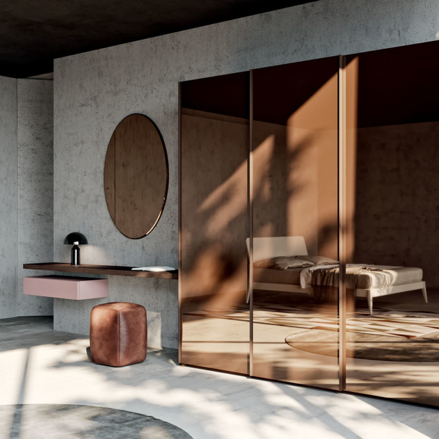 Glass sliding doors bring a new look to the bedroom. They create a lot of light and enhance the space through fluidity and design. Experience space-saving closet doors that finally allow you to stack to the right, the left, or even in the center so you can reach everything inside comfortably.